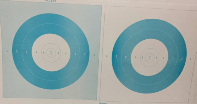 - Los dos blancos de la derecha superior e inferior con el color de fondo blanco, corresponden a los de competencia y en cada uno se disparan 15 tiros.